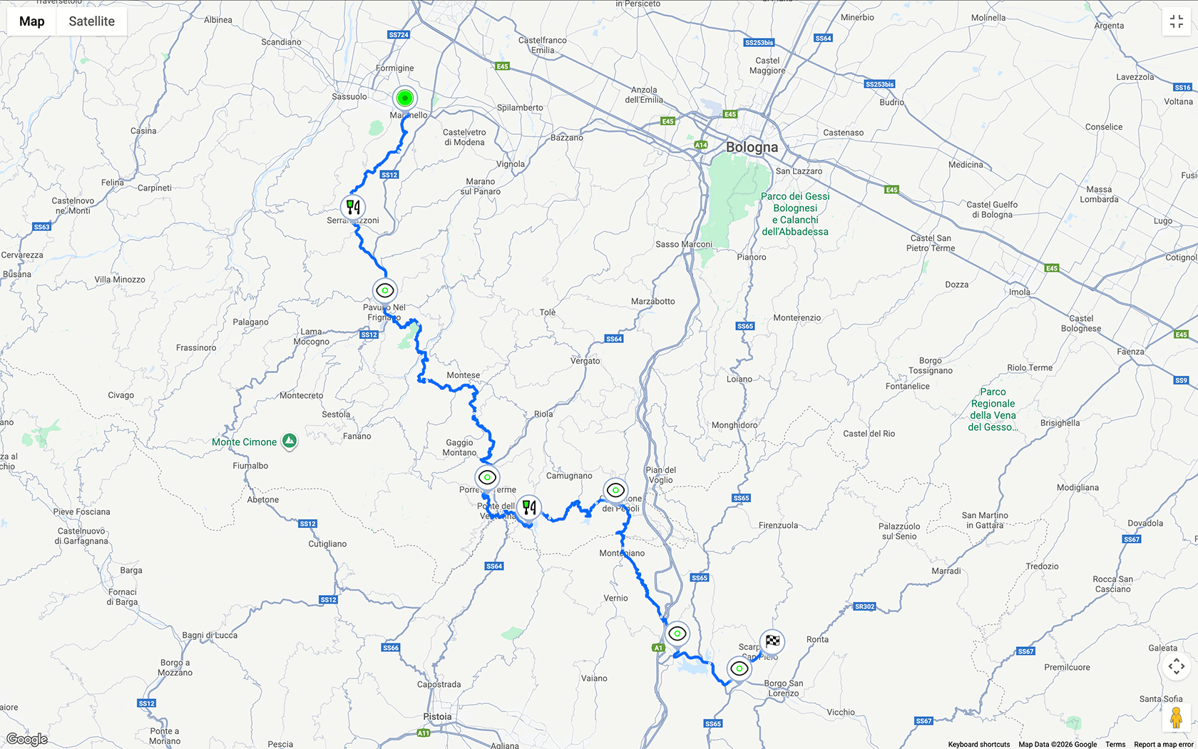 stage 1 | Ferrari Museum → Serramazzoni → Pavullo nel Frignano → Porretta Terme → Suviana |
