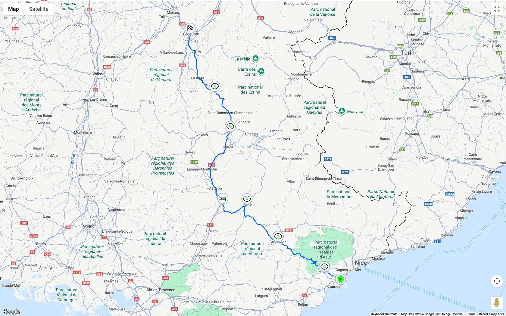 Day 1 | Golfe-Juan → Grasse → Castellane → Digne-les-Bains → Château-Arnoux-Saint-Auban |