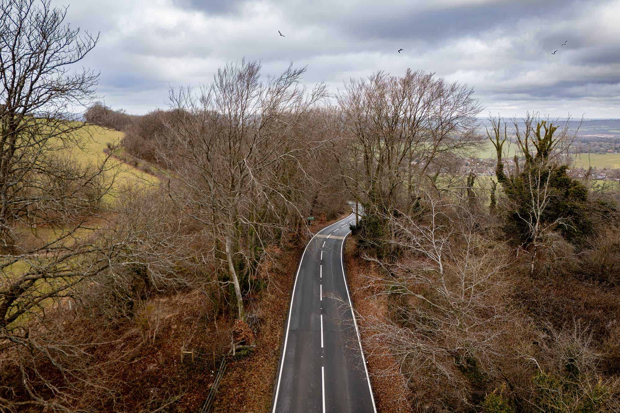 This loop begins with poise, rolling out from Denbies Wine Estate before climbing the iconic Zig Zag Road up Box Hill, a short but spirited ascent where the surface holds well, and each bend invites precision over pace. It’s the kind of opener that sharpens the senses without overwhelming, setting a measured tone for the day ahead.